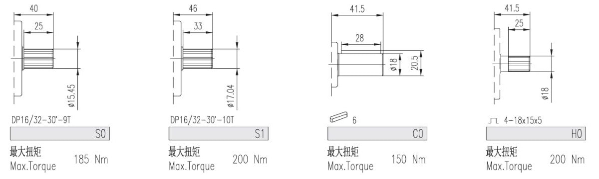 | 排量 | 最大壓力 | 最高轉速 | 最低轉速 | 重量 | 尺寸 | 油口代碼 | 進油口 | 出油口 | ||||||||